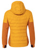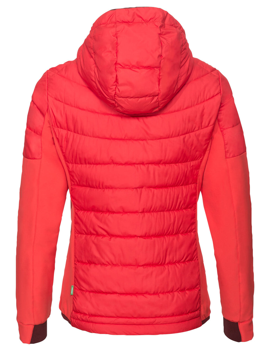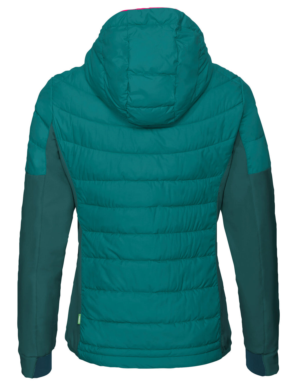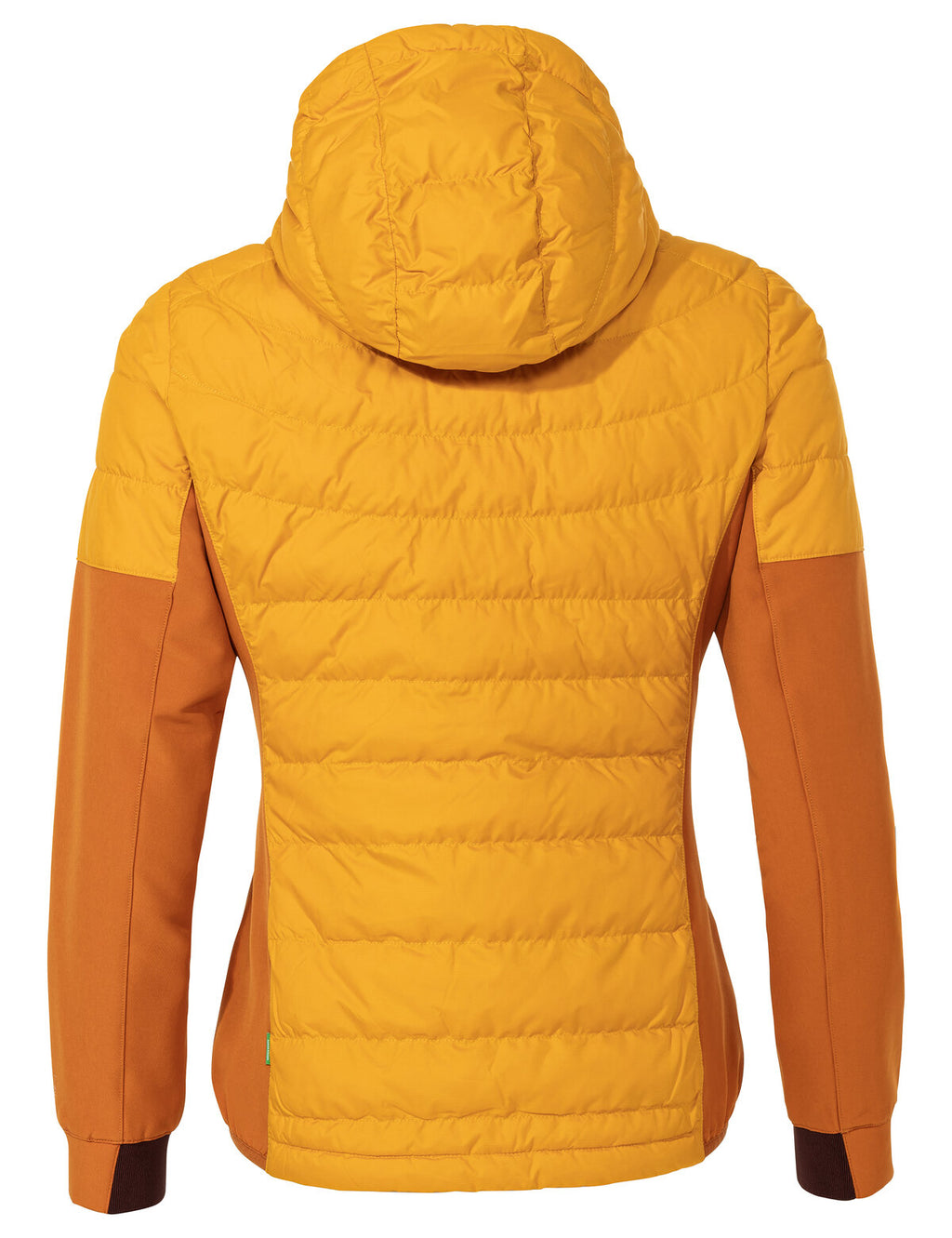 Autumn and winter tours will be a breeze when you've got this sporty women's hiking jacket along. The Women's Elope Hybrid Jacket is highly breathable and provides reliable protection against becoming chilled after a strenuous ascent up the mountain. It's got an athletic cut and is primarily windproof. The stretchy, highly breathable and eco-friendly material on the sleeves and at the sides ensures high freedom of movement. Small valuables can be safely stored in the two practical zip pockets on the outside and one on the inside. To maintain your body's warmth in cooler temperatures, the jacket features a down-like synthetic fiber fill at the torso and over the shoulders. Made from 100% recycled PET bottles, Heatsphere Eco insulation keeps you warm even when wet and dries twice as fast as down. The women's jacket is extremely lightweight and easy to clean as well. The hood can be precision adjusted for perfect protection from wind and weather. The Women's Elope Hybrid Jacket is the perfect choice for active women who are no strangers to altitude and whose value's include protecting the planet. All materials in this jacket for women were made from recycled polyester. The VAUDE Green Shape label stands for environmentally-friendly, functional products made from sustainable and bluesign® certified materials.
